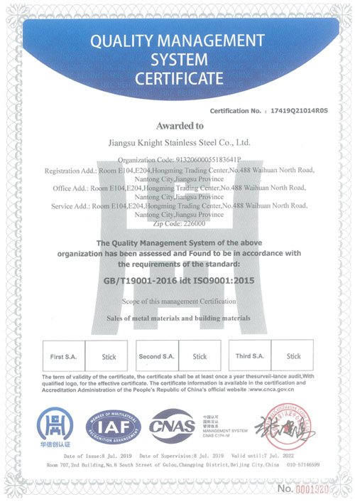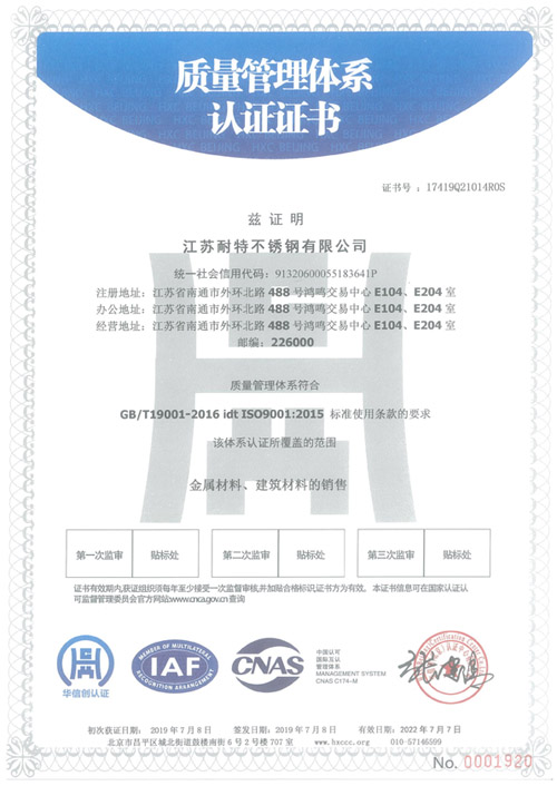 質(zhì)量管理體系認(rèn)證證書(英文版)