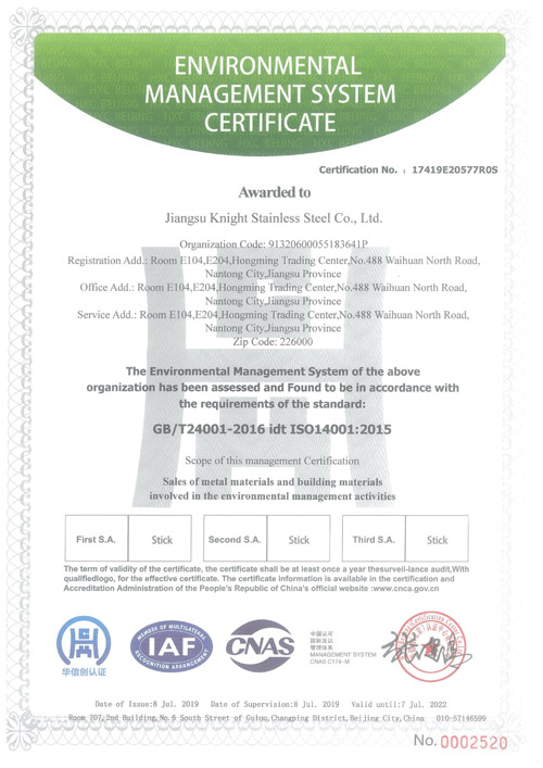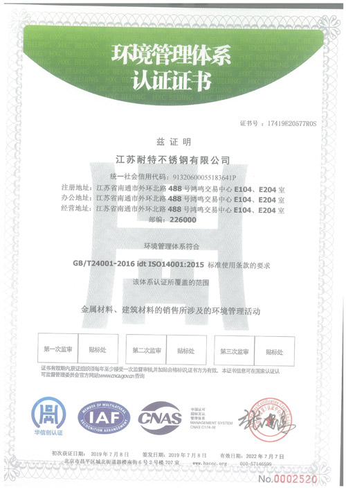 環(huán)境管理體系認(rèn)證證書(英文版)