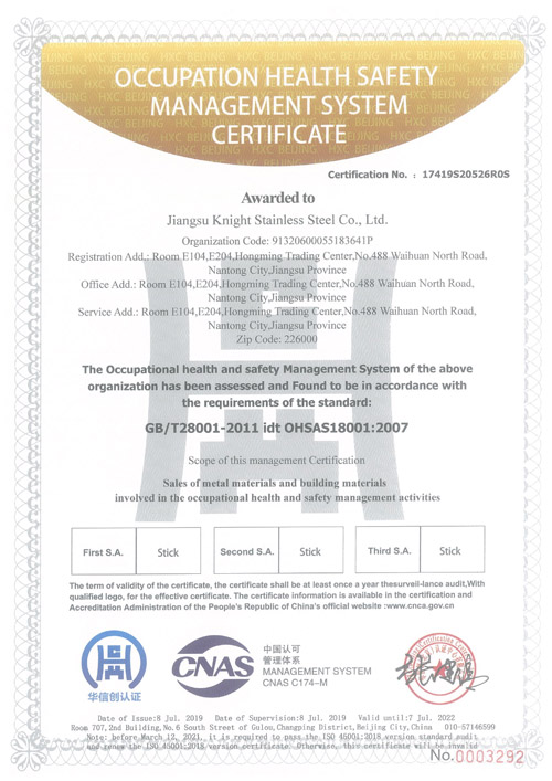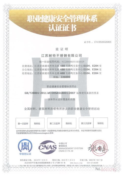 職業(yè)健康安全管理體系認(rèn)證證書(英文版)